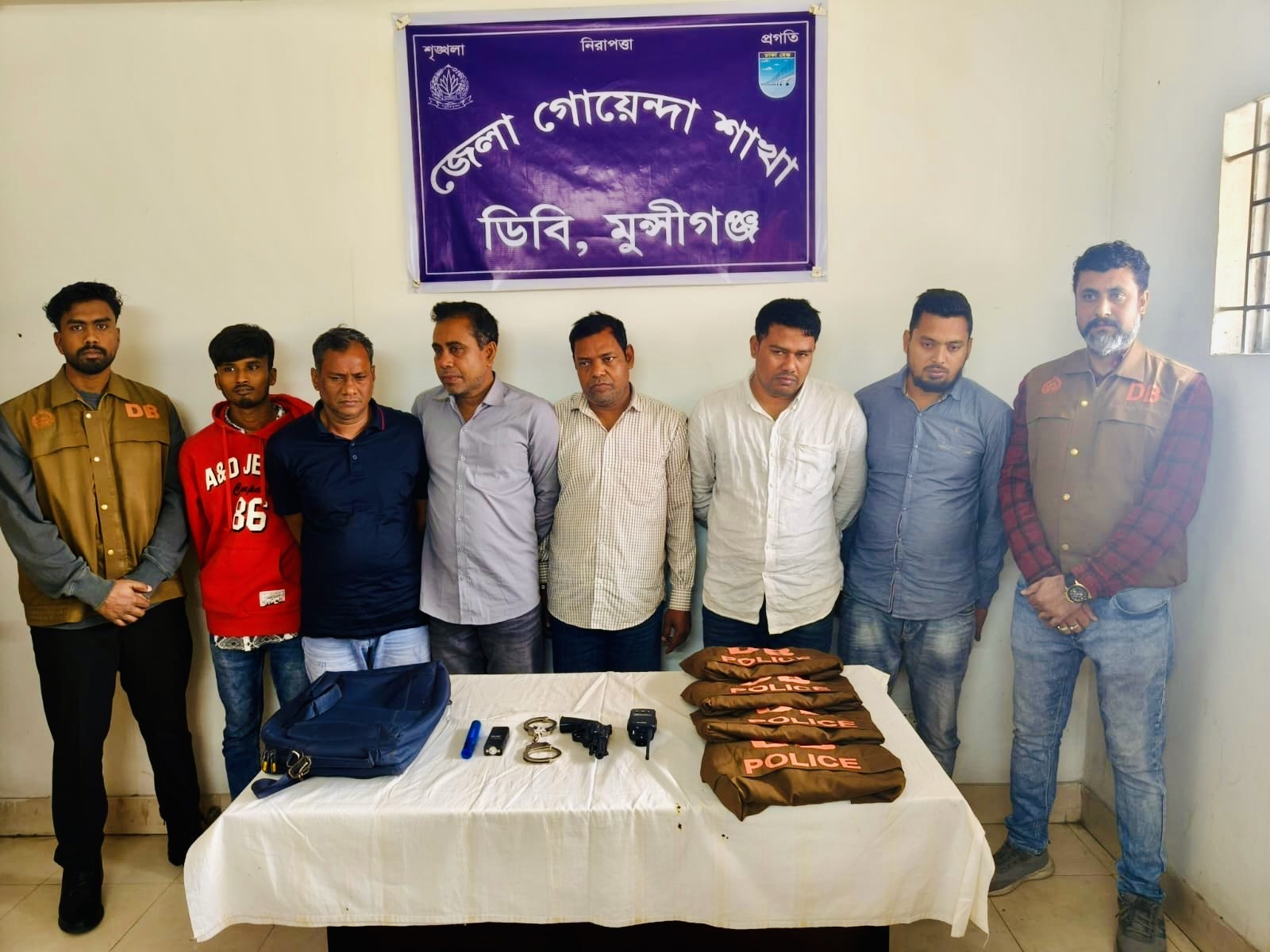 মুন্সীগঞ্জ জেলা গোয়েন্দা শাখার (ডিবি) ভারপ্রাপ্ত কর্মকর্তা (ওসি) ইসতিয়াগ রাসেল জানান, গ্রেফতারকৃতরা দীর্ঘদিন ধরে ডিবি পুলিশ পরিচয়ে এক্সপ্রেসওয়েতে ডাকাতির পরিকল্পনা করছিল এবং পুলিশের পোশাক ব্যবহার করে সাধারণ মানুষের সঙ্গে প্রতারণা করছিল।