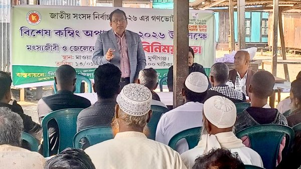 লৌহজংয়ে জেলেদের নিয়ে বিশেষ কম্বিং অপারেশন ও নির্বাচন উপলক্ষে সচেতনতা সভা