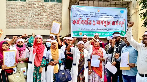 লৌহজংয়ে পরিবার পরিকল্পনা কর্মীদের দাবি আদায়ে কর্মবিরতি ও অবস্থান কর্মসূচি পালন